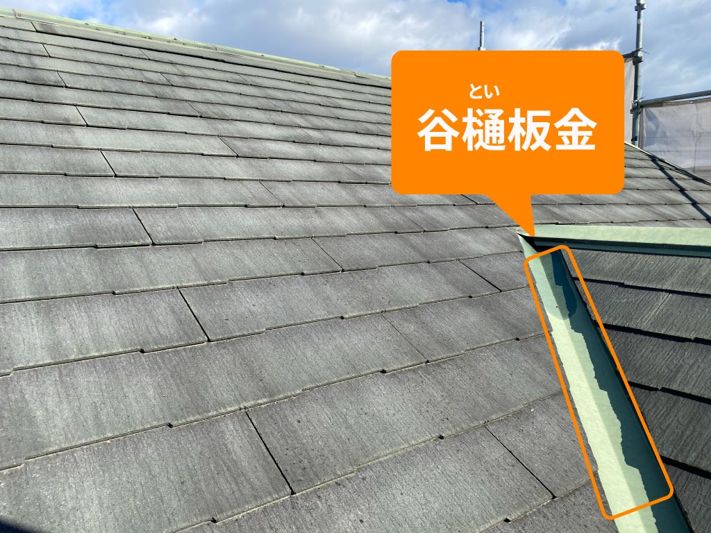 谷の箇所や接合部を覆う屋根板金のことを、谷樋板金(たにといばんきん)と言います。