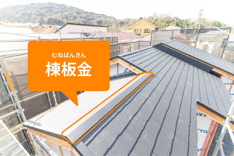 屋根の頂上にある板金のことを棟板金(むねばんきん)と言います。